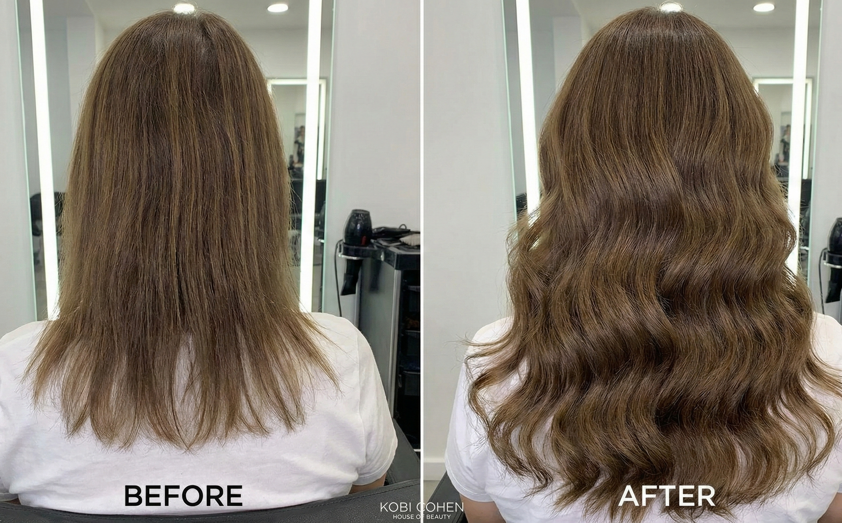 זהו הסוד המקצועי שלנו. רוב הספרים רק מחברים תוספות. קובי גוזר אותן. באמצעות טכניקת גזירה ייחודית (Blending), אנו מטשטשים לחלוטין את המעבר בין השיער הטבעי שלך (הקצר יותר) לבין התוספות הארוכות. השיער הופך ליחידה אחת זורמת, ללא "מדרגות" או סימנים מסגירים..